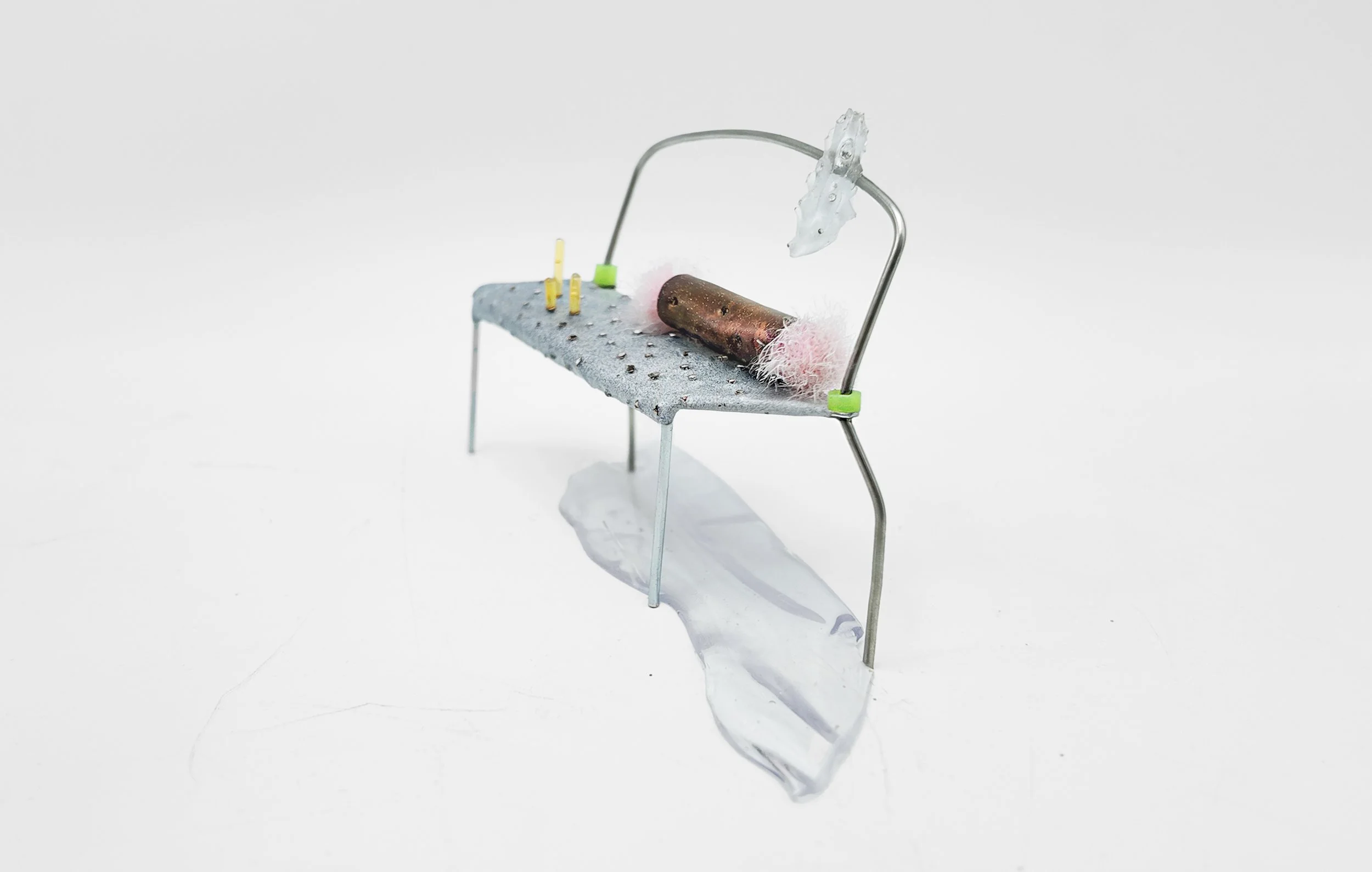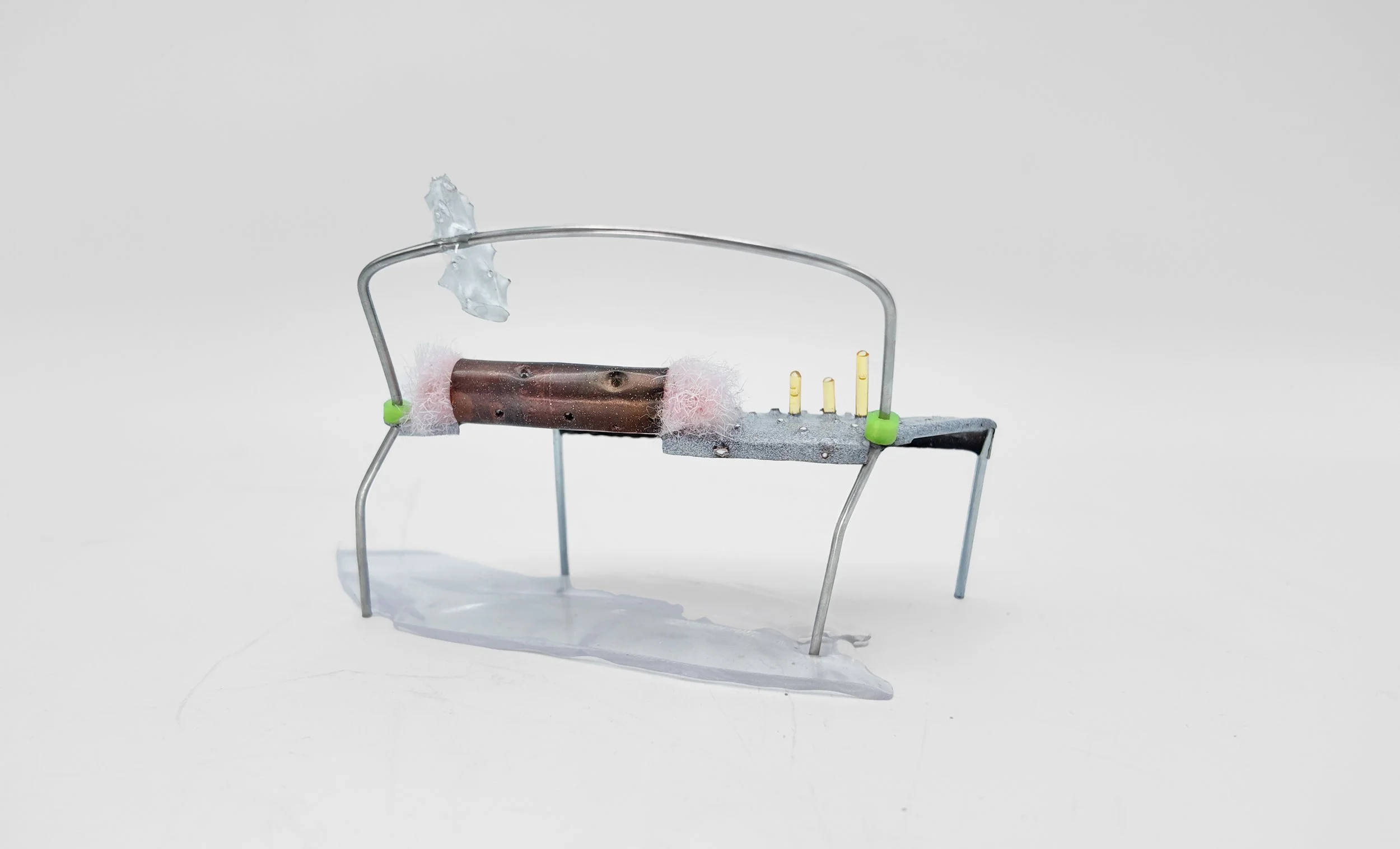 Metal, resin, fur. rubber